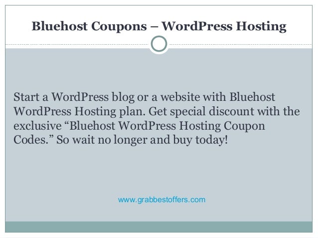 Bluehost Offers & Coupons : 65% OFF On Hosting + Free Domain Aug 2022 Bluehost Coupon Codes: Domains: Up To 60% Off: Bluehost Discount Coupons: VPS Hosting: Up to 40% OFF: Bluehost Hosting Offers India: WordPress Hosting: Up To 20% Off: What is Bluehost? Bluehost is a part of the internationally renowned Endurance International Group, formerly known as BizLand. They host over 2 million domains and constantly ...